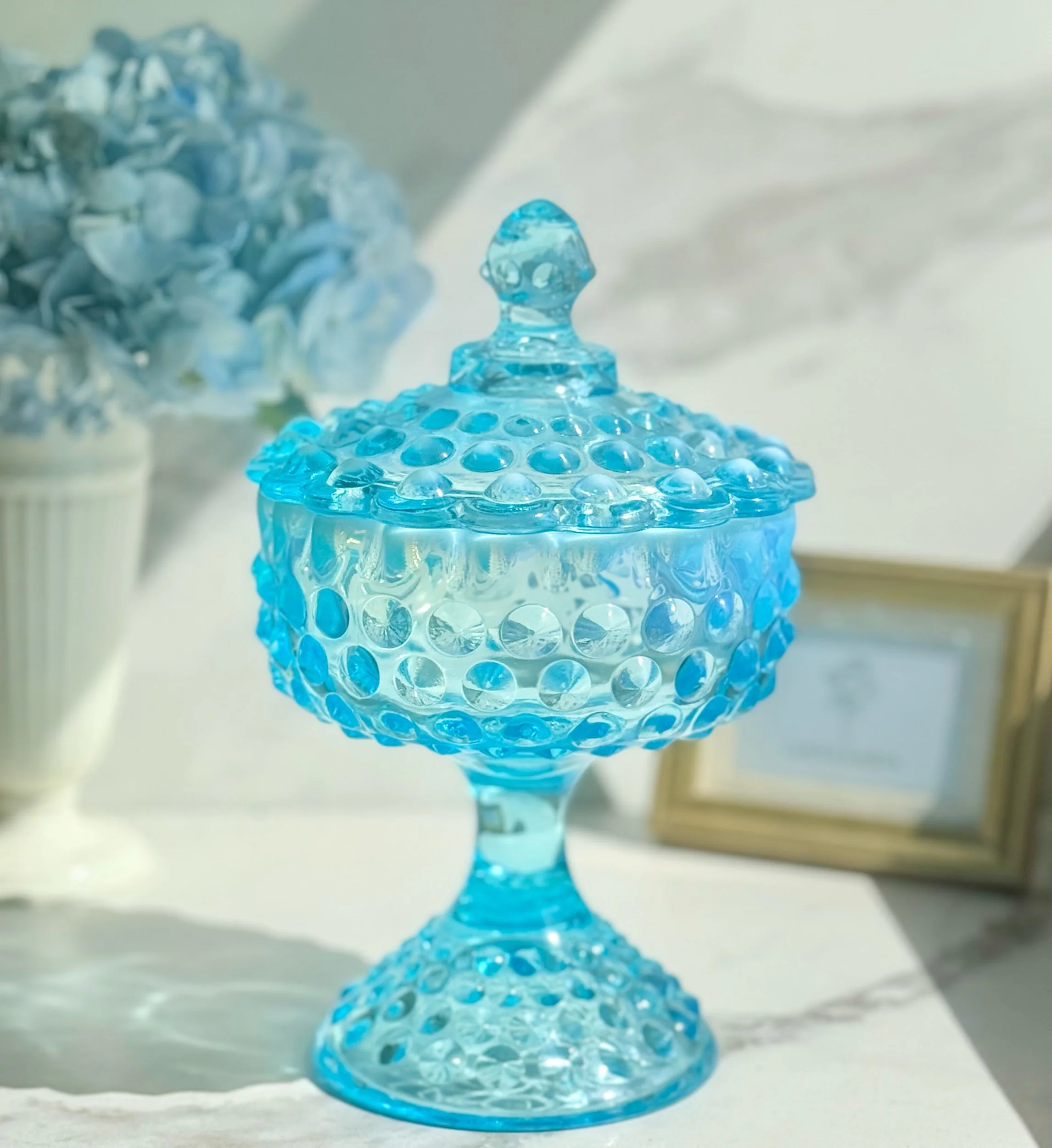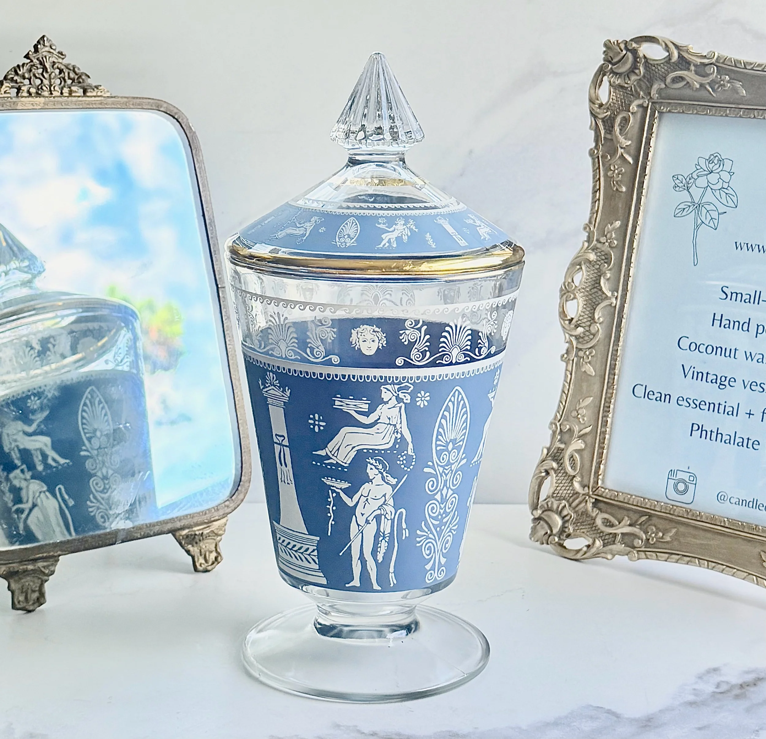 Welcome to the candle shop! You will find an array of vintage vessels that have been carefully curated to remain a staple in your home long after the burn of your candle.